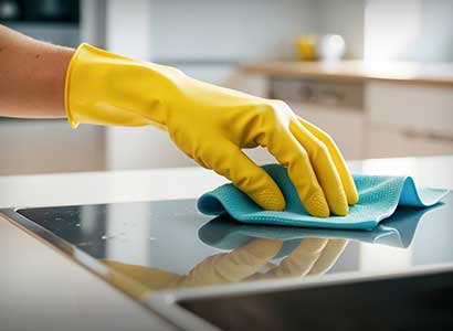 Detailed cleaning of kitchen areas, including appliances, cabinets, and surfaces, for a hygienic cooking environment.